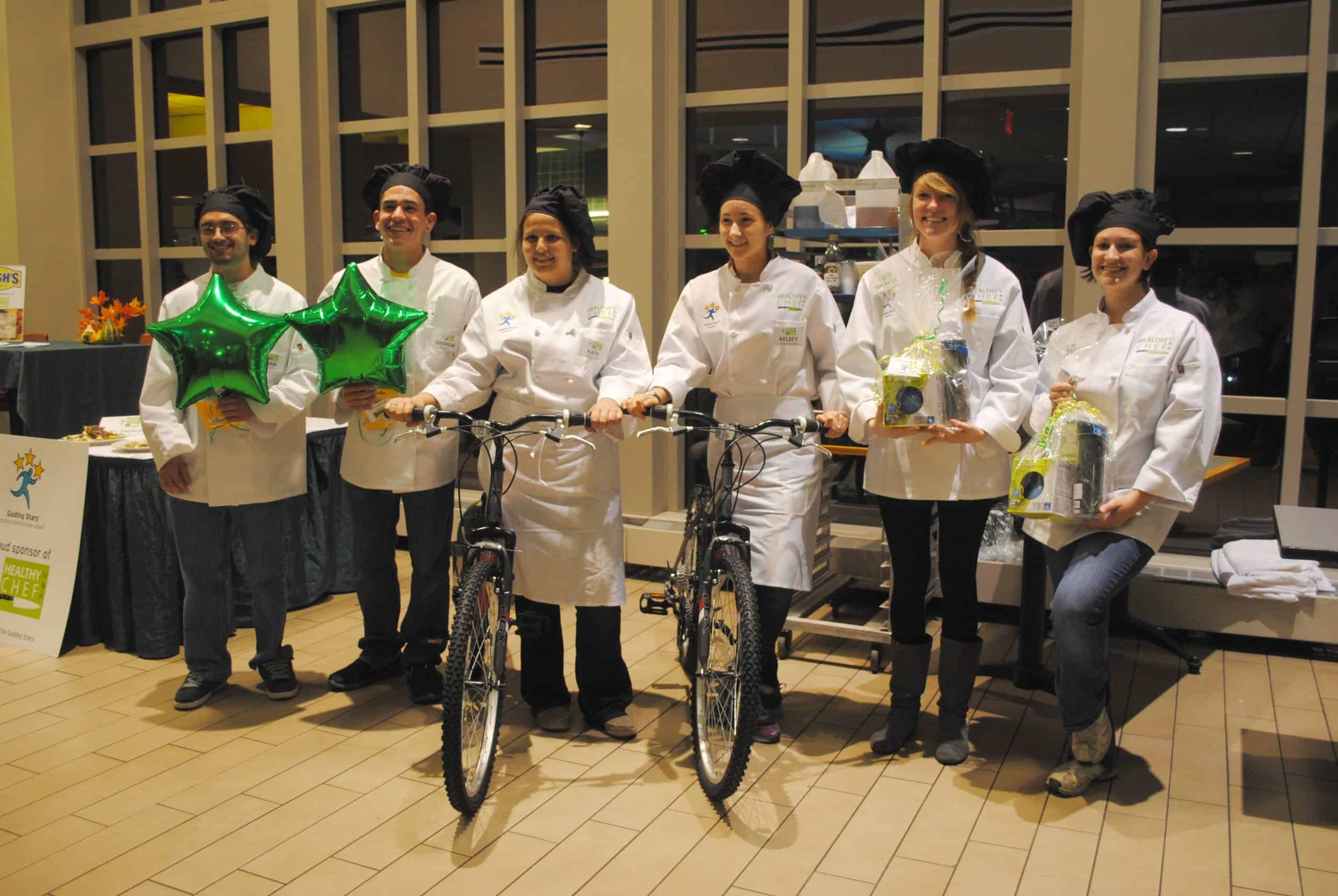 When you think of college dining, you probably think of tons of pizza and kids cooking up ramen noodles in their dorm rooms. I remember lots of toaster-over fare and mystery wok creations by my hallmates.  Maybe that’s because we didn’t have the range of options now available. UNH has an amazing dining program, and what’s more, they have Guiding Stars! As a fun way to engage students to think about healthy food and pay attention to the stars throughout the dining hall, UNH developed the Healthy Chef competition. I watched the three top student teams prepare their star-worthy recipes and present to a panel of judges including: Jon Plodzik, UNH Director of Dining; Kristin Lonsinger, UNH Marketing Coordinator; Phoebe Bonaparte-Krogh, UNH Nutrition Intern; Cheryl Krantz, UNH Dining Assistant Manager; and Erin Dow, Guiding Stars Expert Chef.